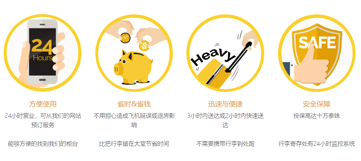 忘掉交通拥堵或在公共交通中携带沉重的行李,AIRPORTELs 通过提供便利来提高您的旅行质量。 我们可以快速安全地运送和存放您的行李。
